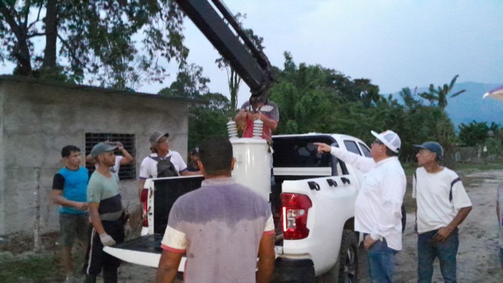 El alcalde del municipio Alberto Adriani, Lisandro Segura, realizó la entrega de dos (2) transformadores de 50 KVA de capacidad cada uno, destinados a fortalecer y optimizar el servicio eléctrico de los sectores El Renacer y 4 de Febrero en la parroquia Rafael Pulido Méndez. La acción de gobierno beneficiará de manera directa a numerosas familias de ambas comunidades.