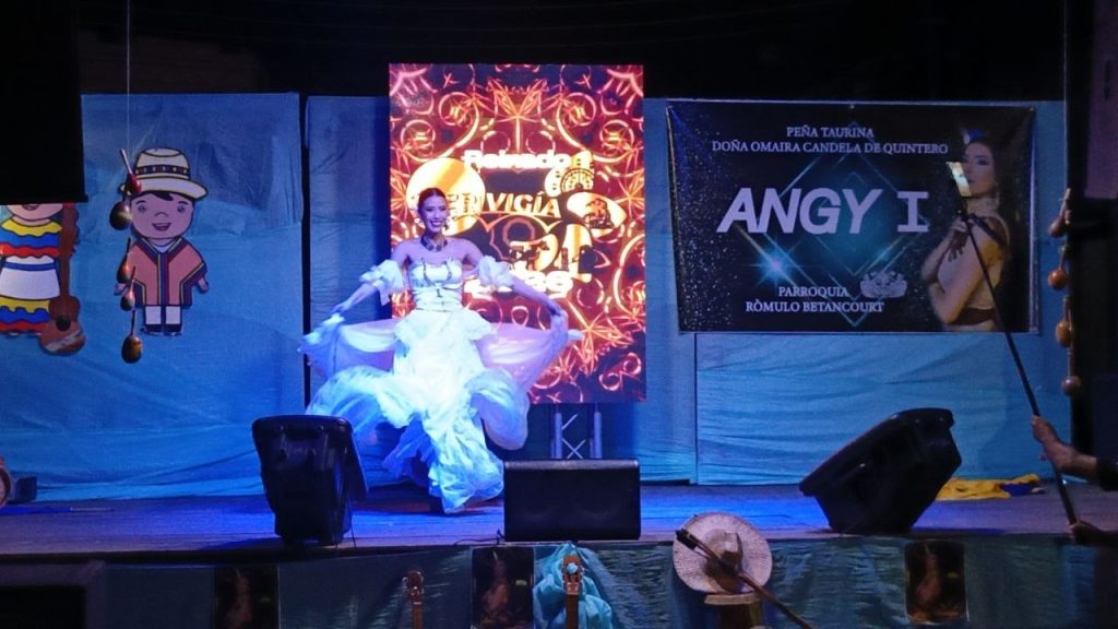 En esta oportunidad, la velada estuvo protagonizada por la candidata Angy Manrique, representante de la parroquia Rómulo Betancourt, quien presentó su puesta en escena titulada “Tambor, Devoción y Llano”, una propuesta cargada de identidad, fuerza y arraigo cultural que rindió homenaje a las raíces venezolanas.