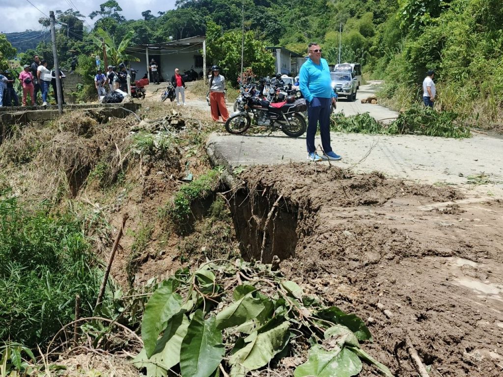 Este domingo, el alcalde Lisandro Segura, junto con un equipo multidisciplinario, atiende afectaciones causadas por las lluvias. En la vía que comunica con La Palmita de la parroquia Gabriel Picón González del municipio Alberto Adriani.